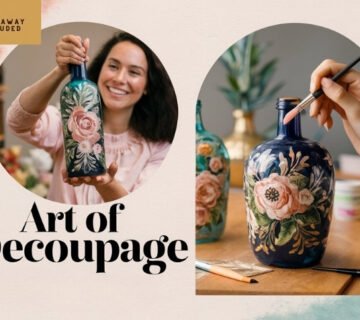 Decoupage is decorating objects by glueing coloured paper cutouts onto them, combined with special paint effects, gold leaf, or other decorative elements. It allows people to express their creativity by transforming plain items like boxes, plates, or furniture into beautiful art pieces. This activity is perfect for people who love crafting and want to personalize everyday objects. It encourages using simple materials to create visually stunning results, and anyone can do it, regardless of skill level. How? You can start by choosing a base object, like a wooden box or canvas. Then, gather colourful paper cutouts, glue, and varnish. First, arrange the paper pieces on the object, then carefully glue them in place. Once dry, a layer of varnish is applied to seal the design and give it a smooth, shiny finish. This simple process lets your creativity flow, with endless possibilities for designs and combinations.